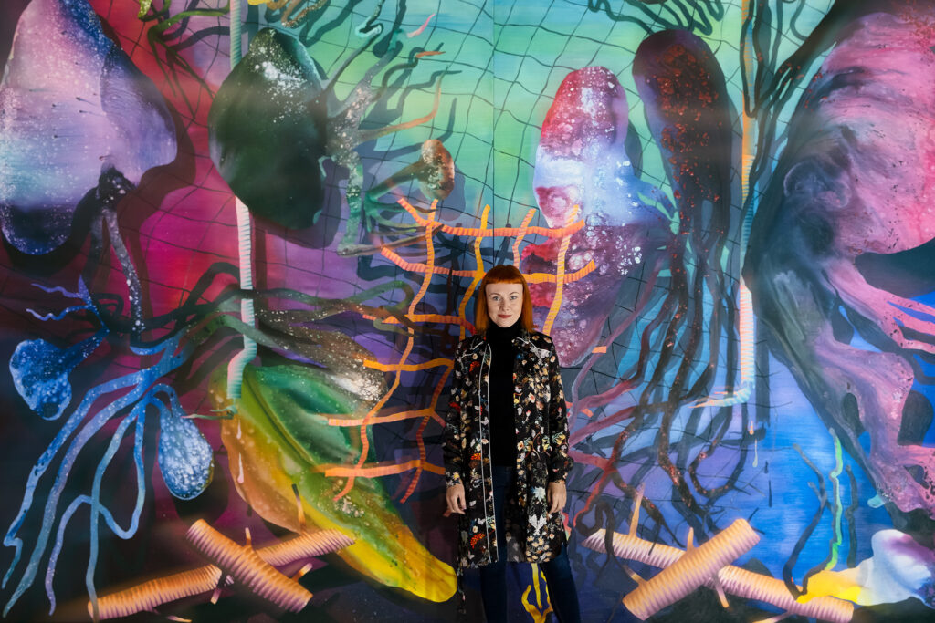 Laura Arum-Lääts Merike Estna teosega "Ohustatud aegade ookean". Foto: erakogu